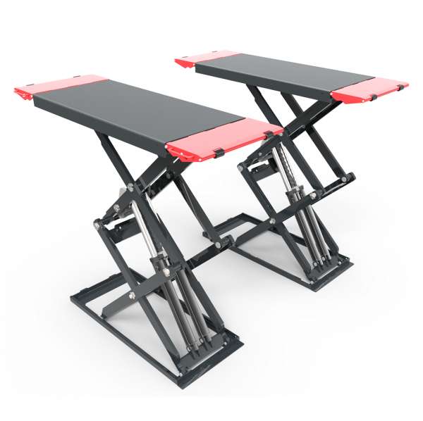 Nizkoprofilno elektrohidravlično škarjasto dvigalo nosilnosti 3.5t, dvojni cilindri s hidravlično zaporo, brez mehanske blokade. Dolžina platform 2000mm, min. višina 105mm, max. dvig 1950mm. Montaža na obstoječa tla ali pa v tla.